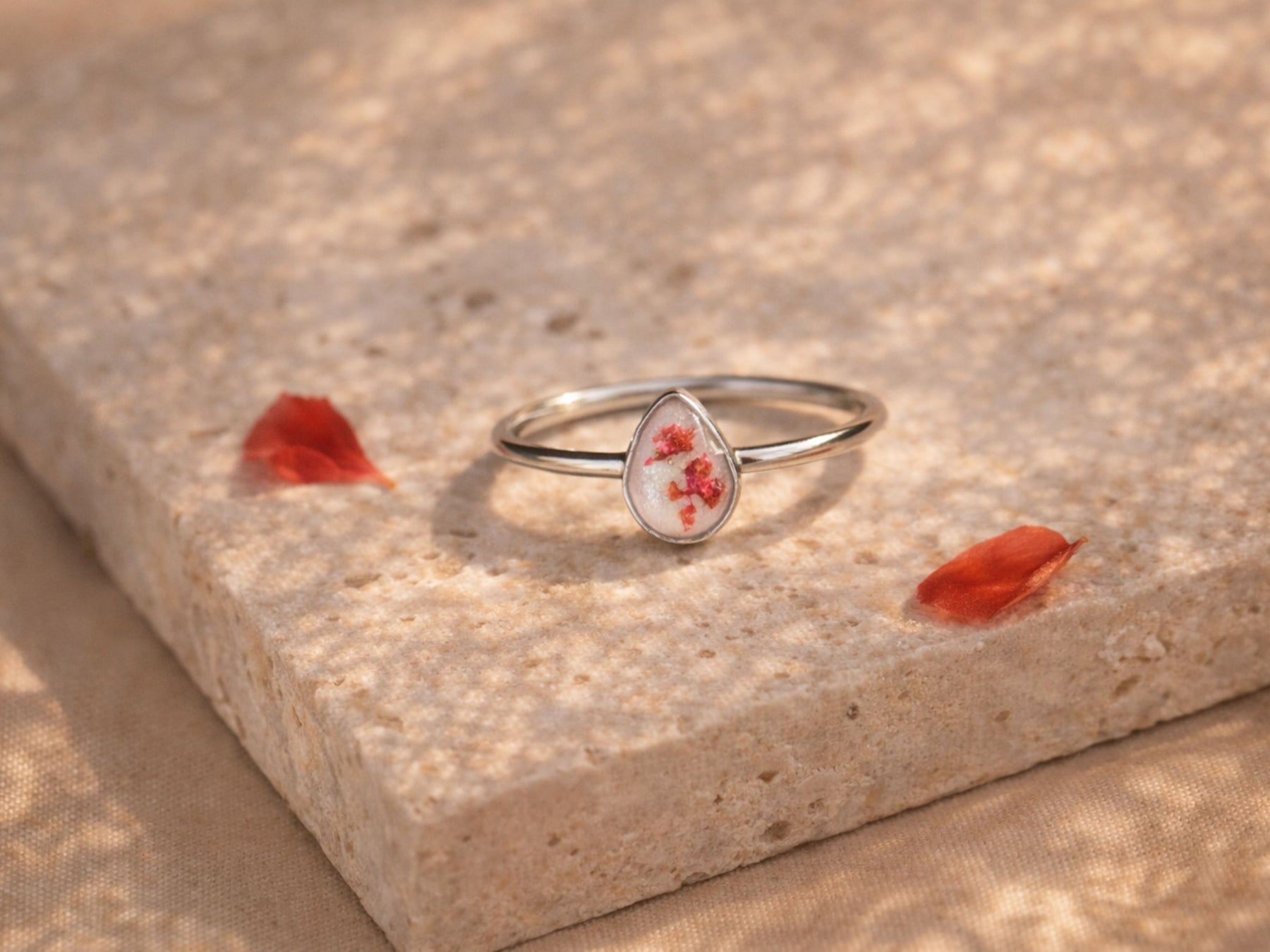 De Herinneringsring Lagrima is een verfijnde as ring met een elegante teardrop-vorm. “Lagrima” betekent traan in het Spaans, een subtiele verwijzing naar emotie, verbondenheid en herinnering. In deze ring met as verwerken wij met zorg een persoonlijke inclusie, zoals as, een haarlokje of gedroogde bloemblaadjes.