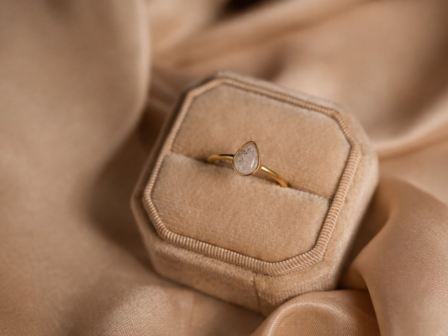 Je kiest zelf de steenkleur die bij jou past en kunt het ontwerp verrijken met subtiele add-ins, zoals bladgoud of opaalpoeder. Zo ontstaat een asring die volledig aansluit bij jouw verhaal en draagstijl.