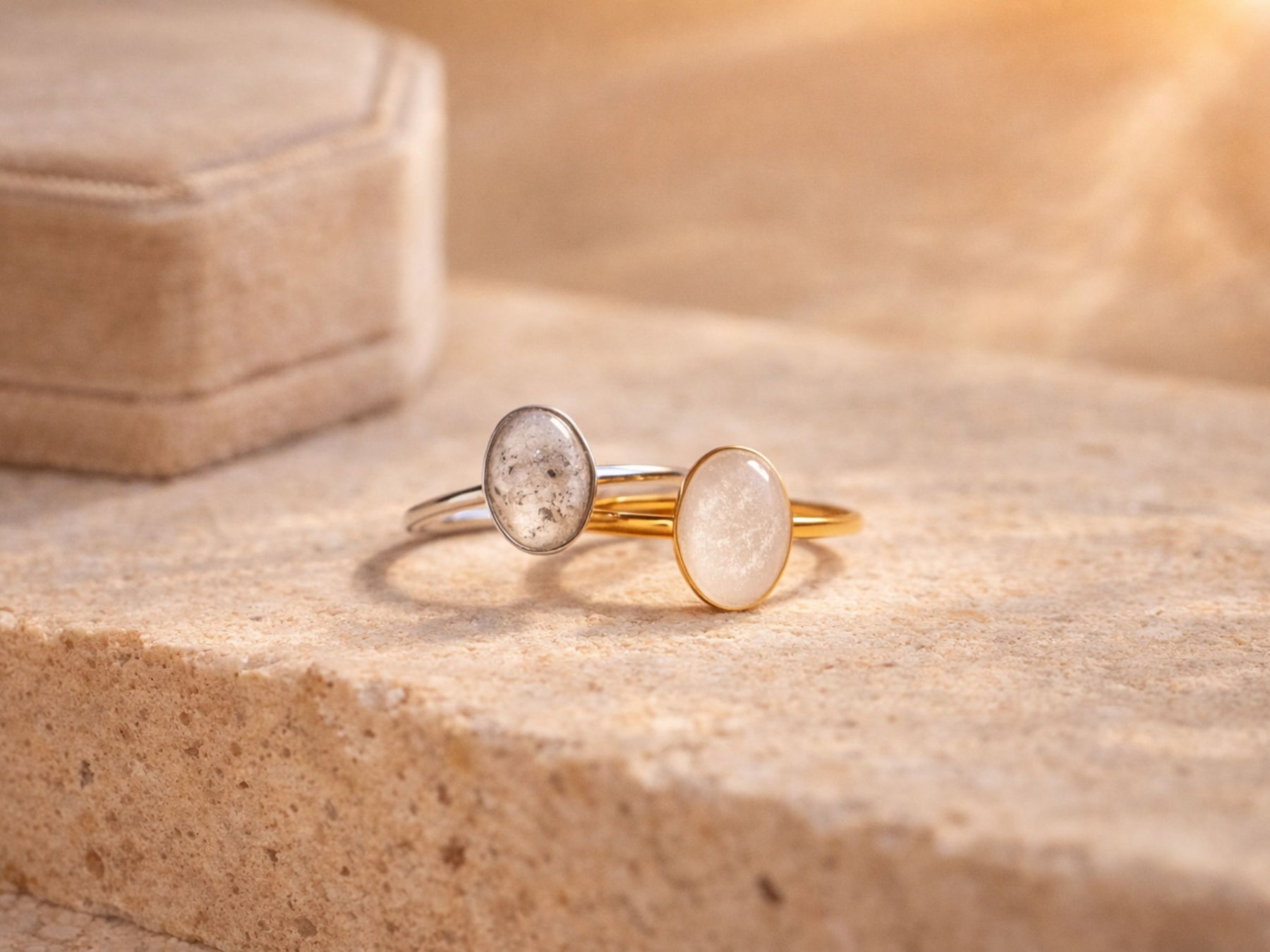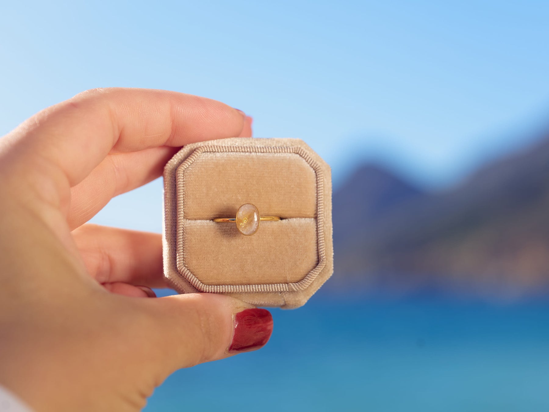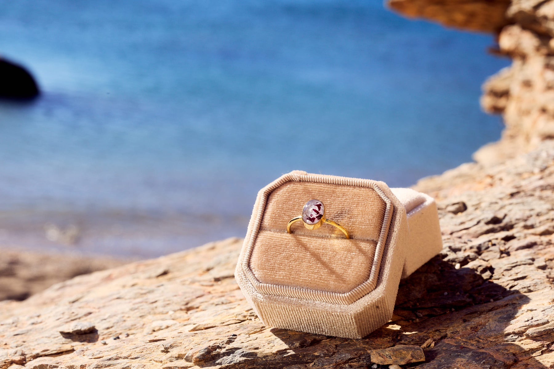 De Asring Solace is een persoonlijke ring met as, ontworpen om een herinnering op een tastbare en liefdevolle manier te bewaren. In het ovale kuipje verwerken wij met zorg de as van een dierbare, een haarlokje of andere betekenisvolle inclusies, zoals gedroogde bloemblaadjes.